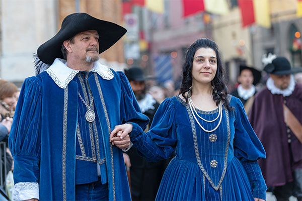 Narrator 1: A group of nobles are chatting. Suddenly, a trumpet blares. The room goes quiet.
